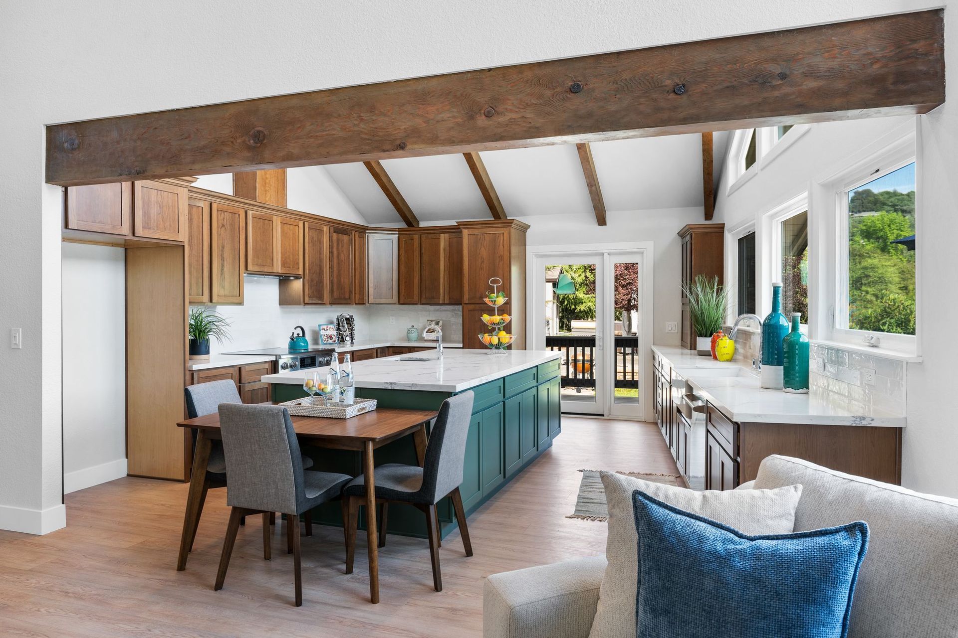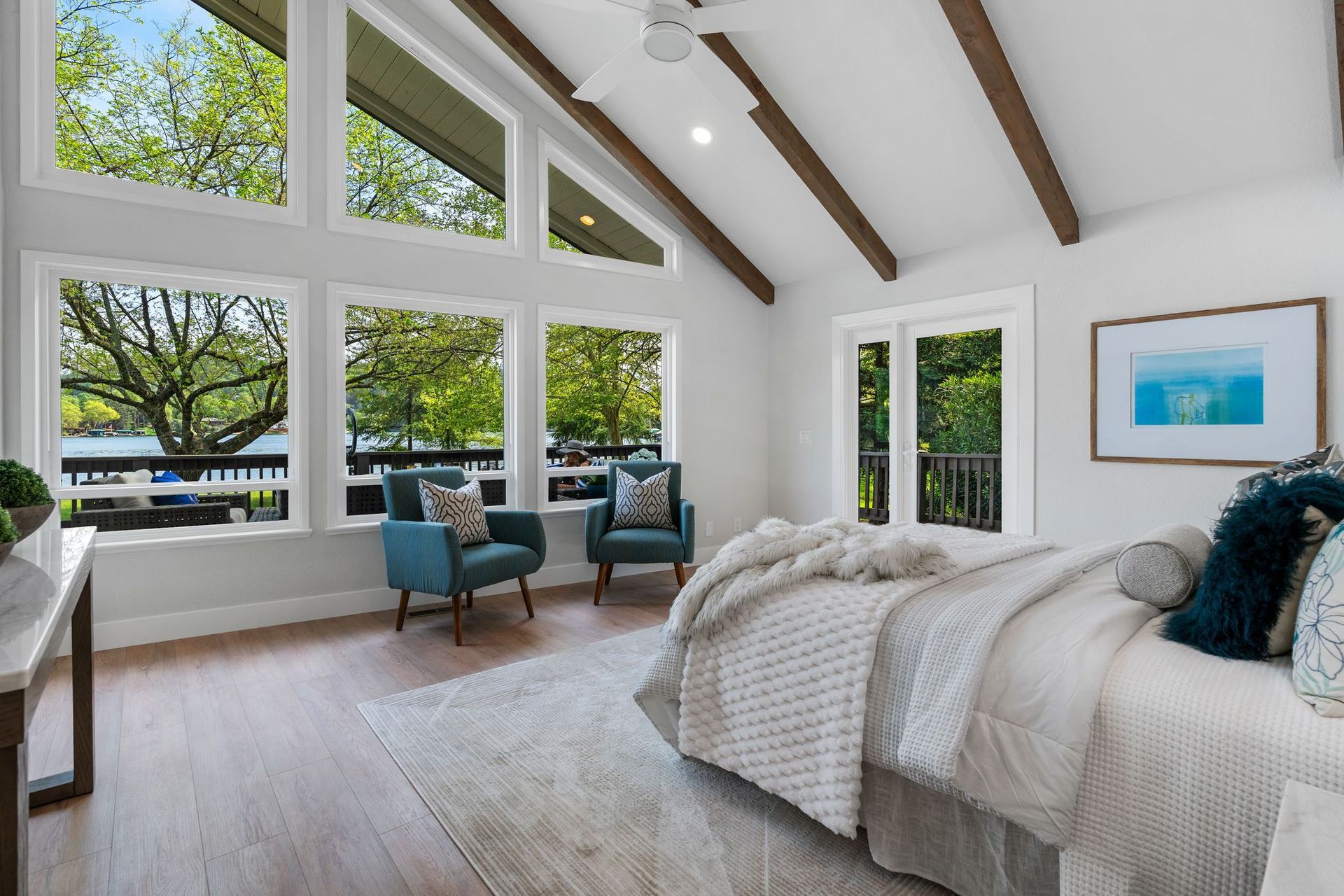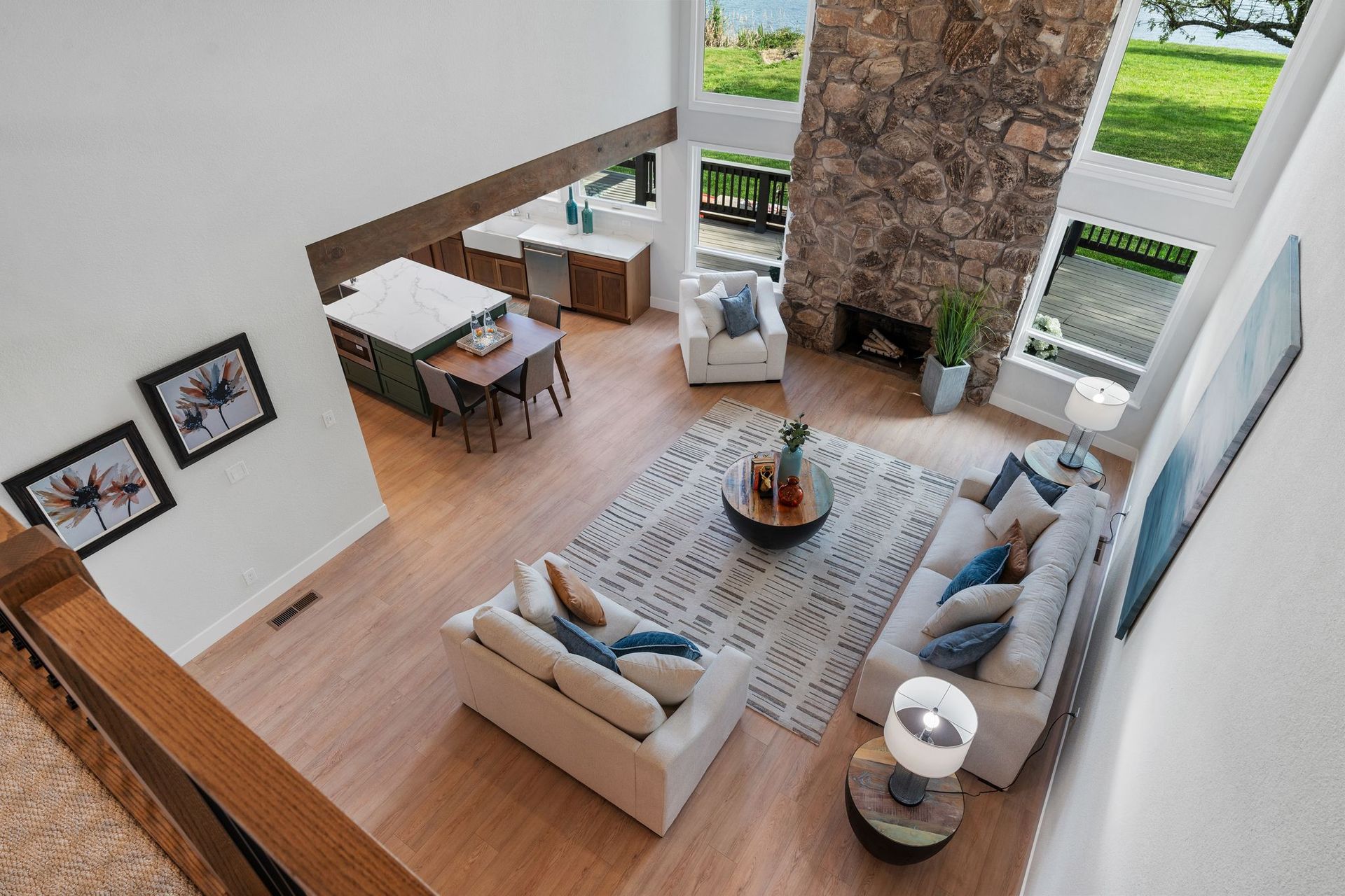 Its nearly 3,000 square feet of refined living space unfolds with the gracious ease of a single-story home, yet reveals unexpected grandeur in a sweeping loft that surveys the treetops and shimmering water beyond.
