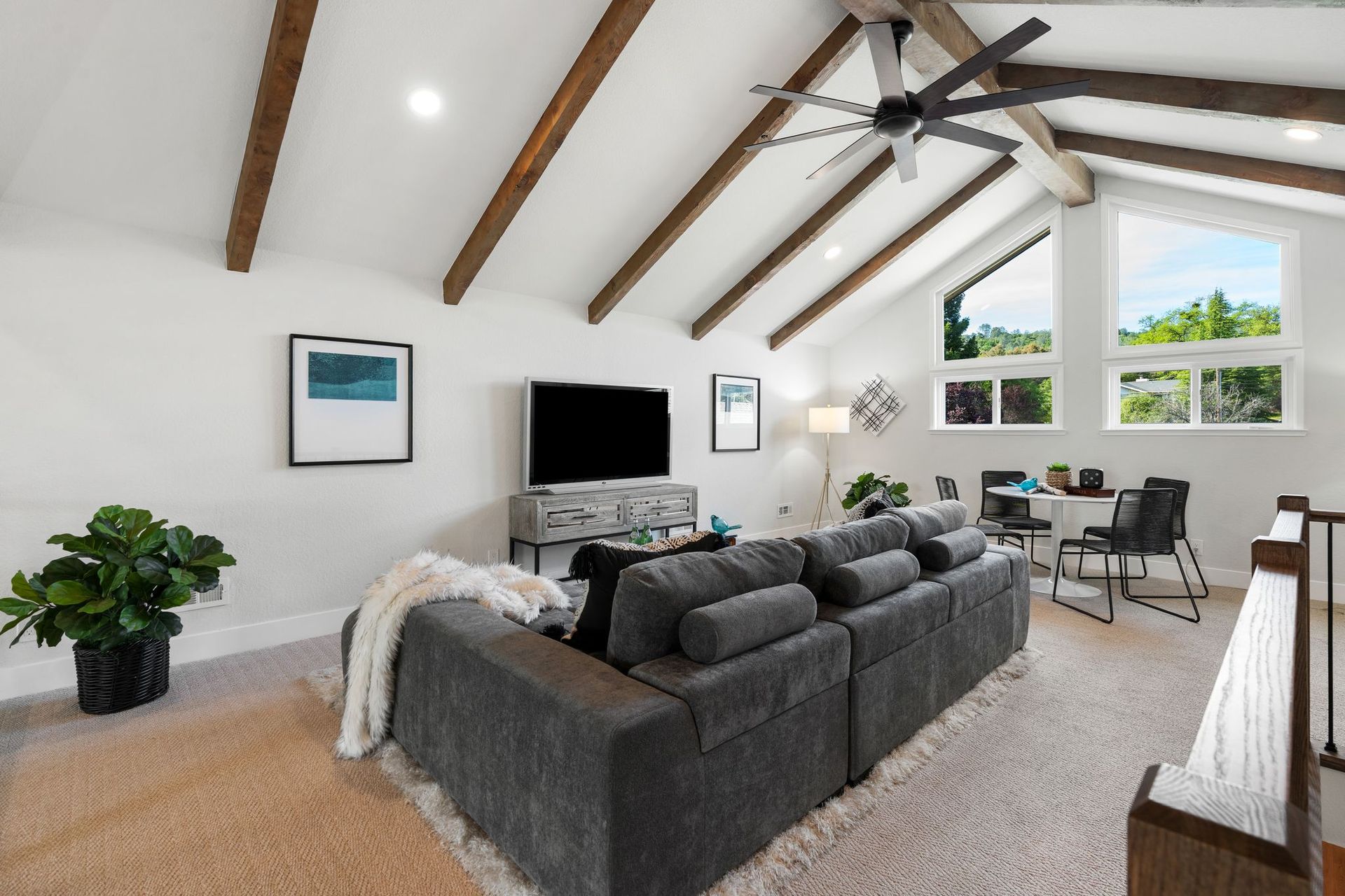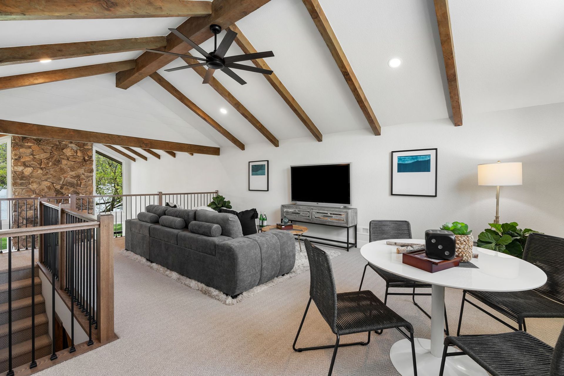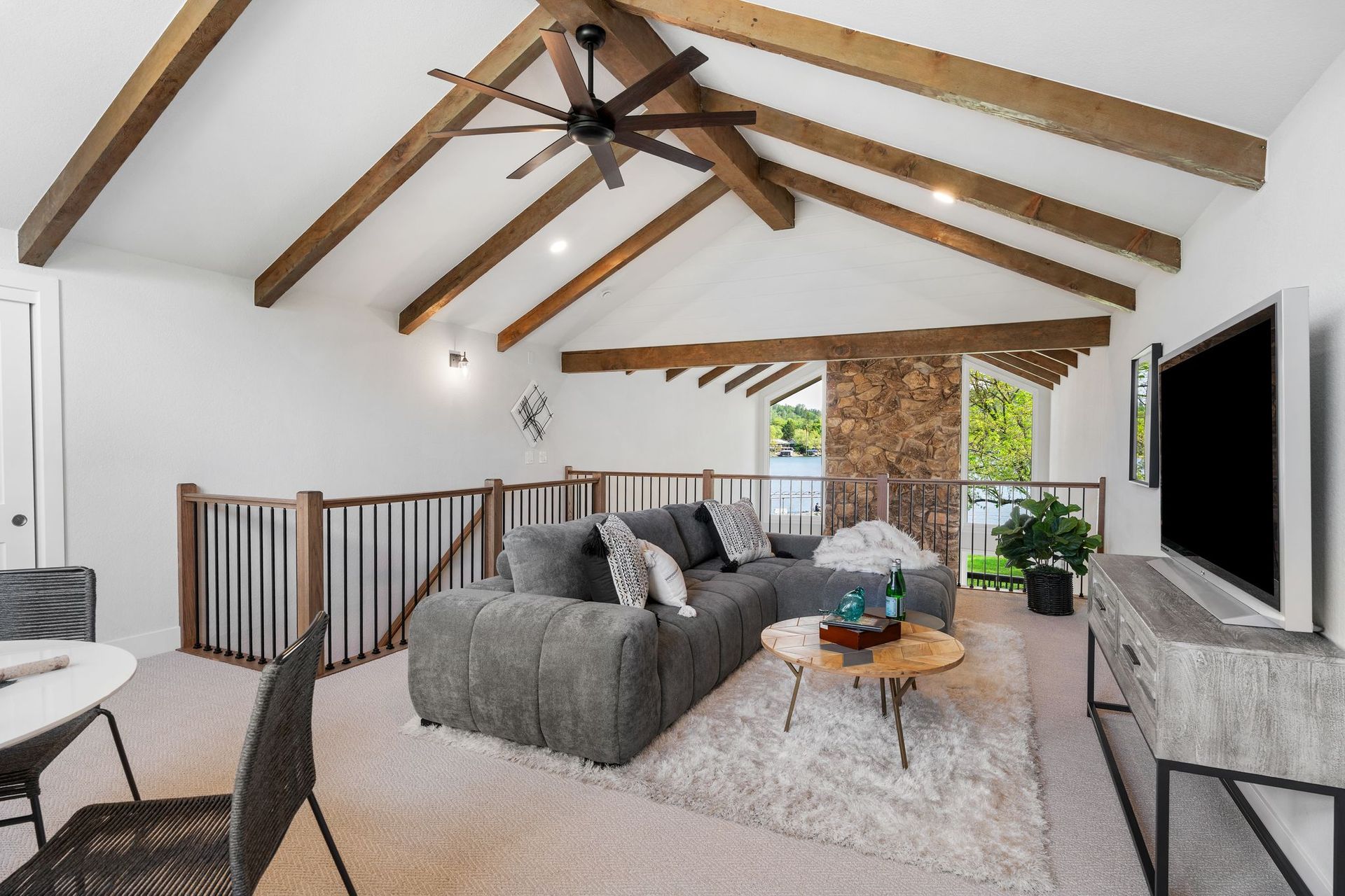 "The loft is a revelation — a soaring secondary world above the main living level, suited equally to a home office, a creative studio, a media room, or simply a perch from which to watch the world below."